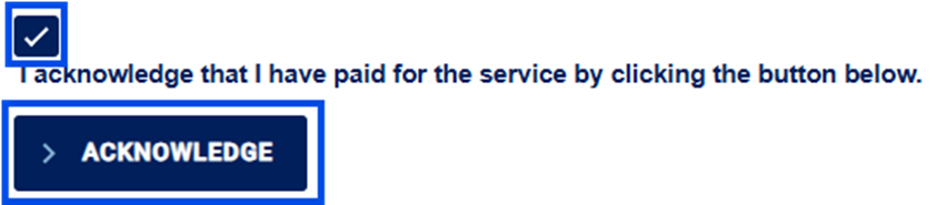Step 4 - Acknowledge that you have paid for the service by checking the box and then click the Acknowledge button: