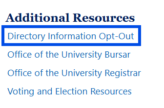 Under the Additional Resources section, click the Directory Information Opt-Out link: